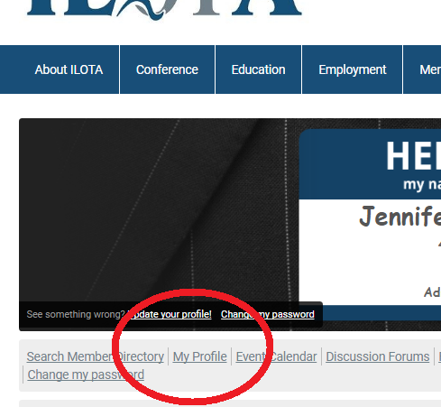 3) Place your mouse pointer over “my profile” and a pop up menu will appear. If the pop up menu does not appear, click on “my profile”